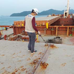 Draft Survey is used to calculate the weight of cargo loaded on a vessel or a barge at its embarkation point and unloaded at its destination. The procedure is complicated involving many factors including ballast, consumables onboard such as fuel oil, fresh water, etc., the accuracy of the vessel’s hydrostatic tables, conditions of the draft markings on the vessel’s hull, weather and sea conditions at the time of the survey. Our surveyor derives weight from mathematical formulas utilizing interpolation methodology, an exacting process to address correction to the perpendiculars, hull deformation, trim, heel, density for displacement, etc.